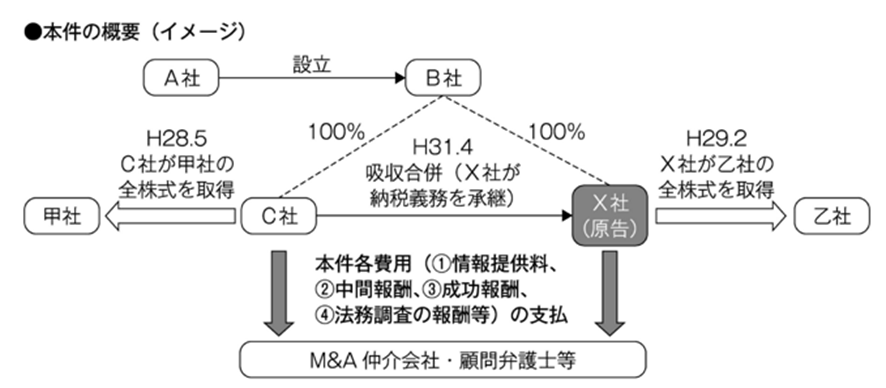 買収に当たって、①~④の費用が発生し、これらの費用について、取得価額に算入すべきか、あるいは損金処理すべきかということが、X社と課税庁の間で争われた事案です。
